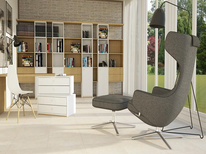 自然大方的書房設計,一字形書櫃簡單實用,半開放式的設計,讓儲納作用更多樣化;午后陽光斜映入室,給您一室輕松優雅。