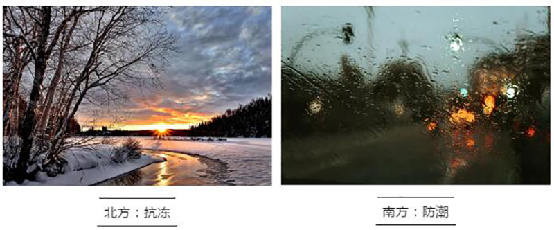 北方地區一般要求家具、板材的含水率要低于10%,否則在過干情況下容易開裂。且北方有地暖,所以地面裝潢材料要選擇耐熱性能較好的。