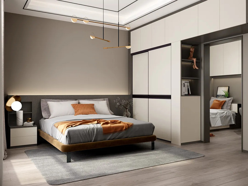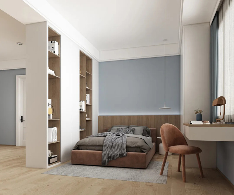 房間夠大,客製化到頂大衣櫃或衣帽間,巧妙地隔出一個房,衣櫃作為兩房的隔斷,又能裝又不顯壓抑。臥室有步入式衣帽間就更方便了,可以直接改造成另一個小房間。
