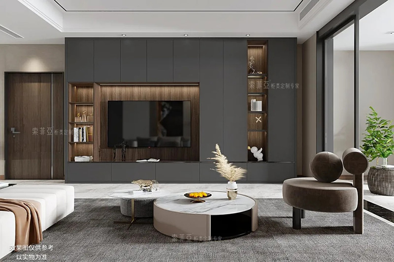 拋棄傳統的背景墻做法,通過客製化櫃體,把收納需求和美觀需求相結合,好看又實用。