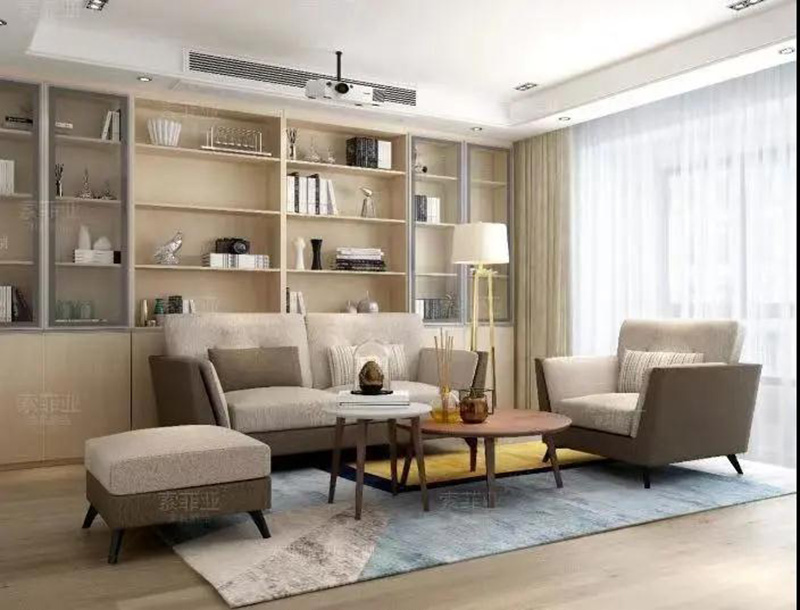 我們總是希望家里的收納空間越多越好,所以設置一個收納沙發墻就很實用,而且還能分擔客廳電視櫃的收納壓力。