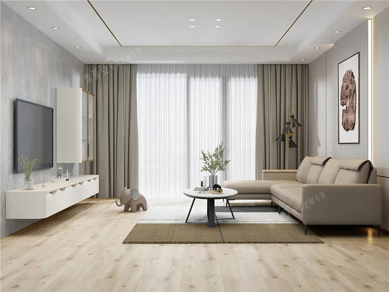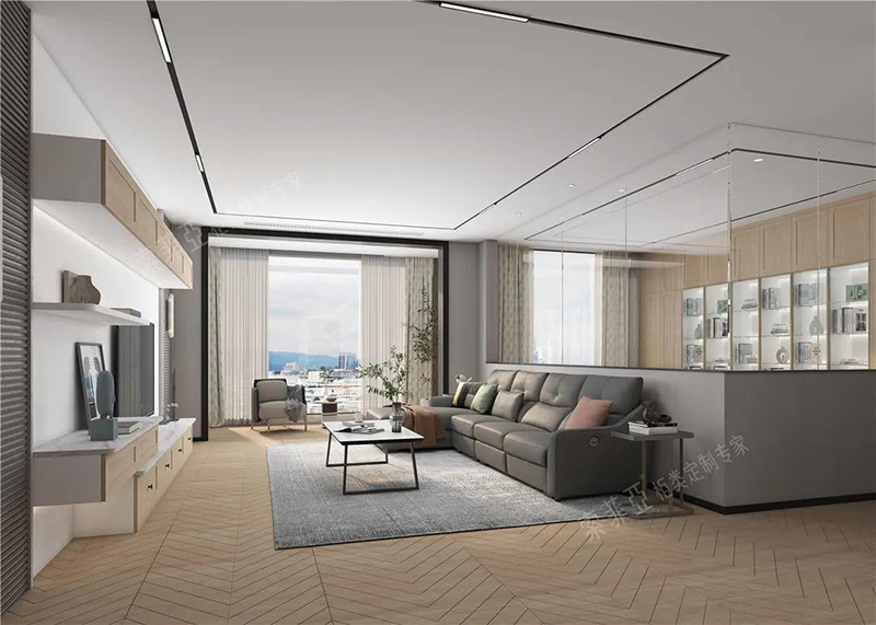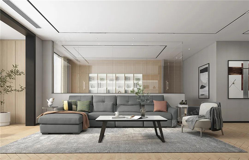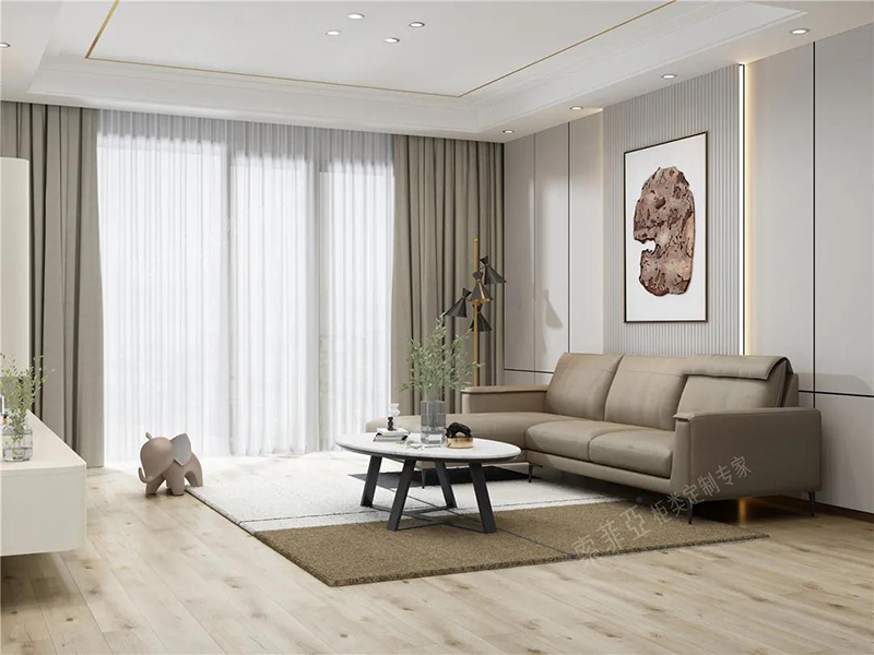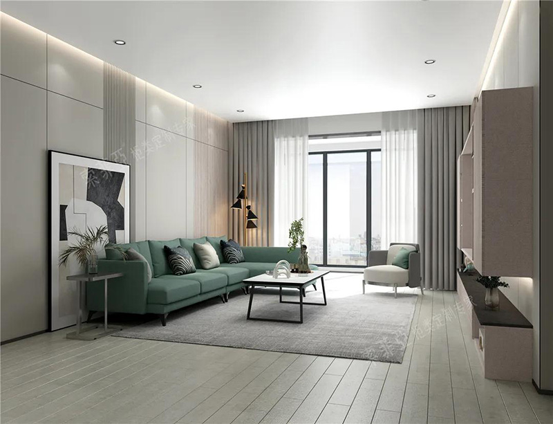 在淺色硬裝的基礎上,用黑色線條勾勒,如裝飾線、家具腿腳、燈飾、門窗外框等,會讓視覺呈現出規整感。最后以一款出彩的單品提亮,如科洛迪-布藝沙發A款,能起到畫龍點睛的效果。