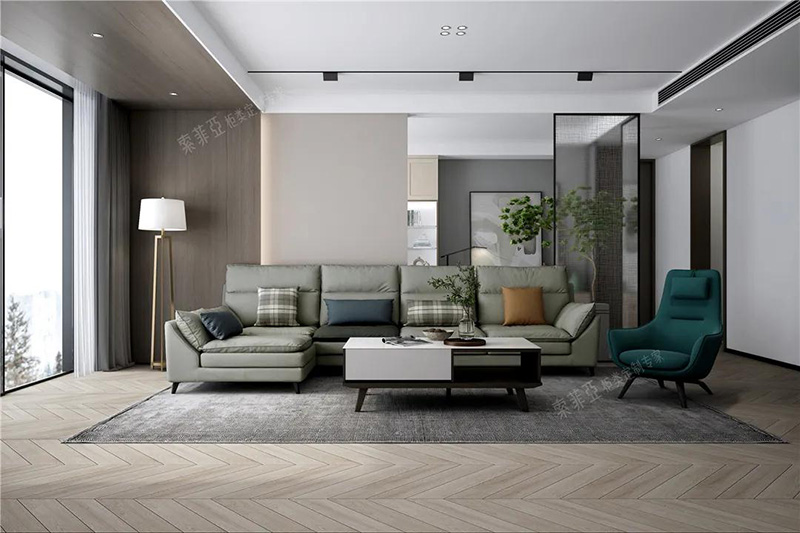 如科洛迪-功能科技布沙發F款、科洛迪-科技布沙發C款,就配套了拼色抱枕搭配,在明亮色系空間里,別有一番心思。
