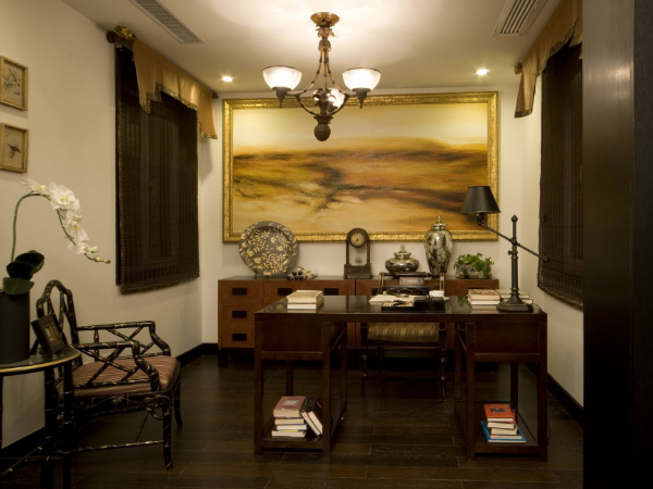 這種小書房裝潢風格具有很強的17世紀歐洲貴族的文化感受和歷史內涵,采用的裝飾設計線條自然、流暢,看起來十分豪華。整個書房給人的感受就是典雅中透著高貴,深沉而又盡顯奢華。