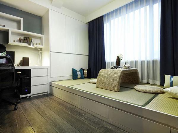 大多數的家庭的房屋的面積都是不算大的,所以沒有足夠的空間兩打造一間書房,因而就會將臥室和書房打造在一起,主要就是舒適為主。當然了,有些房屋面積夠大的房主也喜歡這種裝潢設計。榻榻米打造的床墊軟硬度十分的合適,對于人身體健康有一定的幫助。