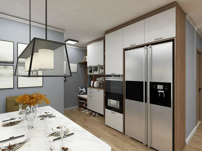 餐廳空間不足,且與廚房相鄰時,將餐邊櫃做進墻,隔斷、儲物一舉兩得。