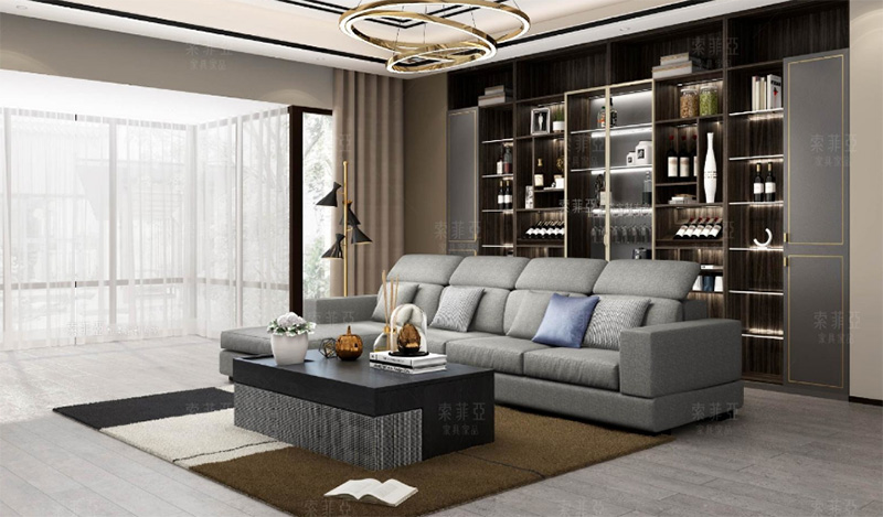 除了電視櫃之外,也可以選擇讓沙發背櫃做進墻,保留客廳視覺中心的清爽感之余,收納能力也大大增加。