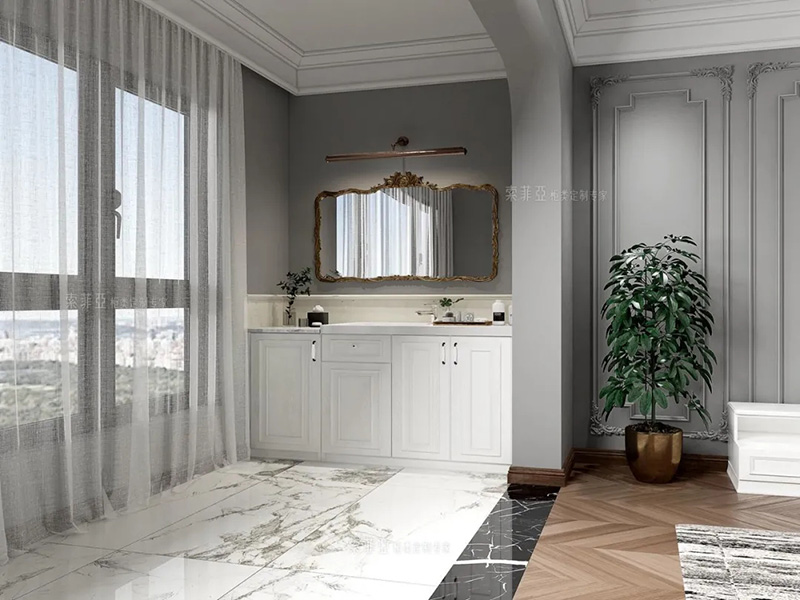 在原有墻面的基礎上再造一面假墻或砌一道側墻,既能拓展櫃子的收納空間,又讓空間格局變得寬敞,簡單實用。