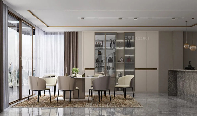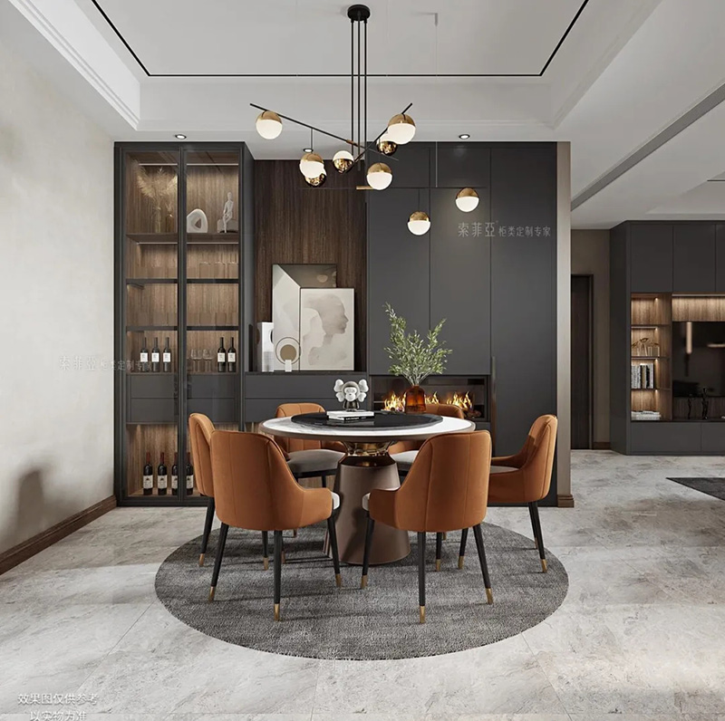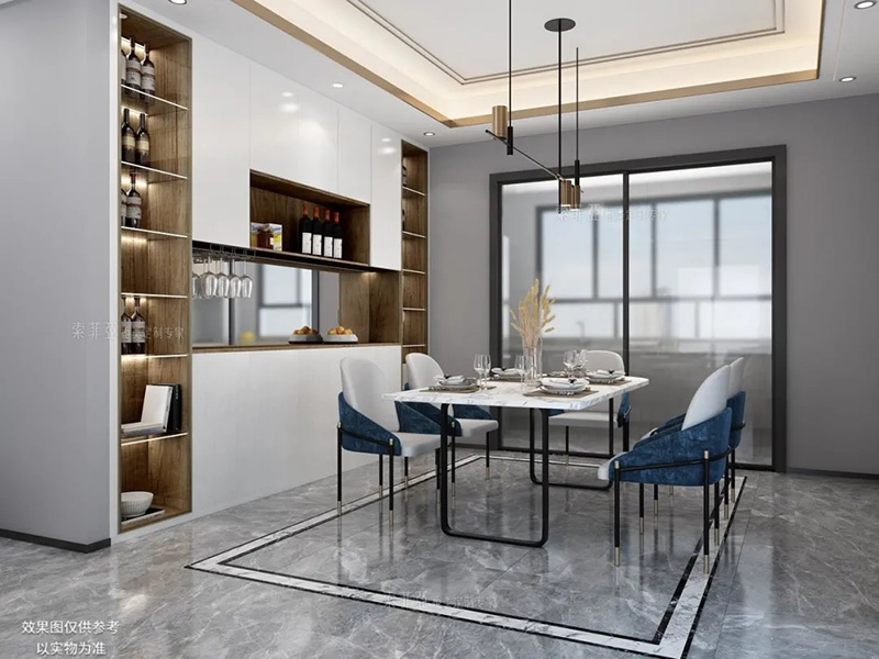 餐廳餐邊櫃做進墻,同樣美觀大氣且省空間。