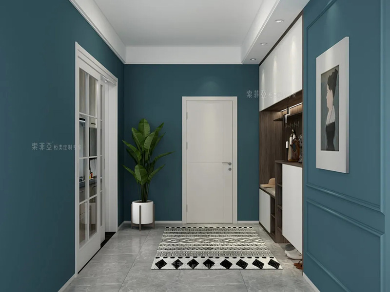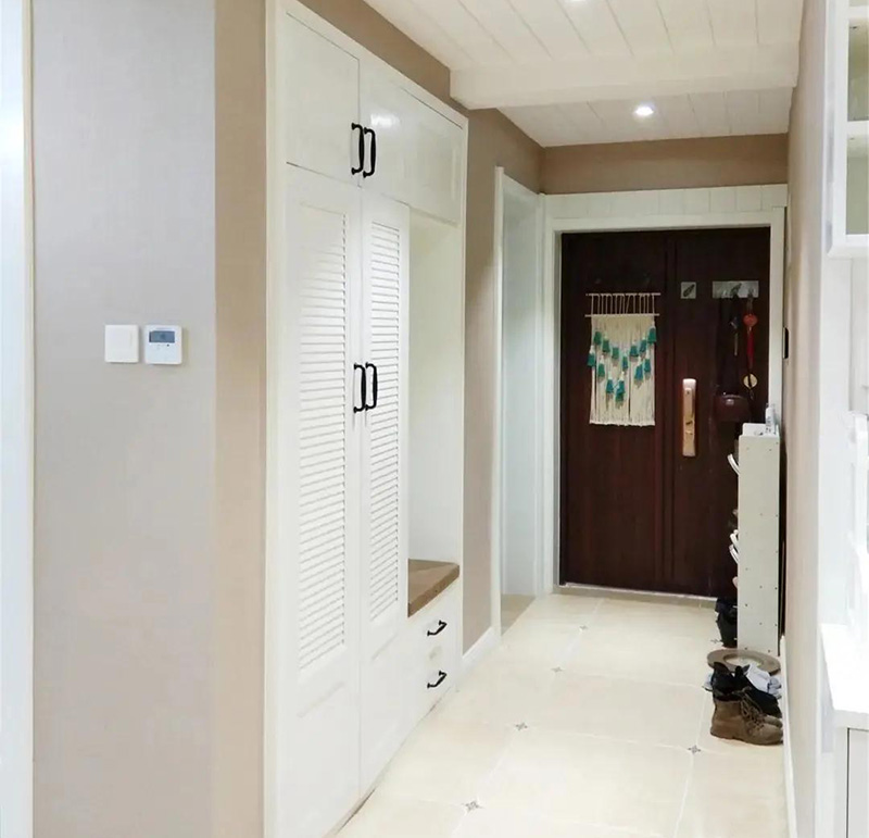 把入戶櫃直接做進墻,櫃子入墻減少了櫃體的占地面積,在玄關這個小空間里特別實用。