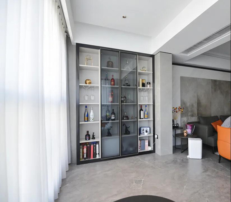 原因無它,就是因為陽臺櫃做進墻能夠很好地兼容客廳陽臺裸露不美觀的門洞。