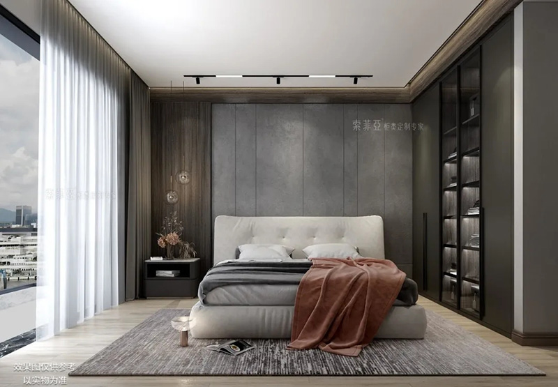 墻面平整又流暢,衣櫃做成頂天立地也不會給睡眠空間帶來一絲視覺壓抑感。