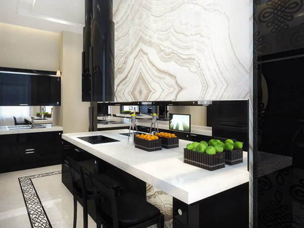 3、利用料理臺,如做成一個小餐臺,並在小餐臺上添置一些燈光,溫馨而實用。