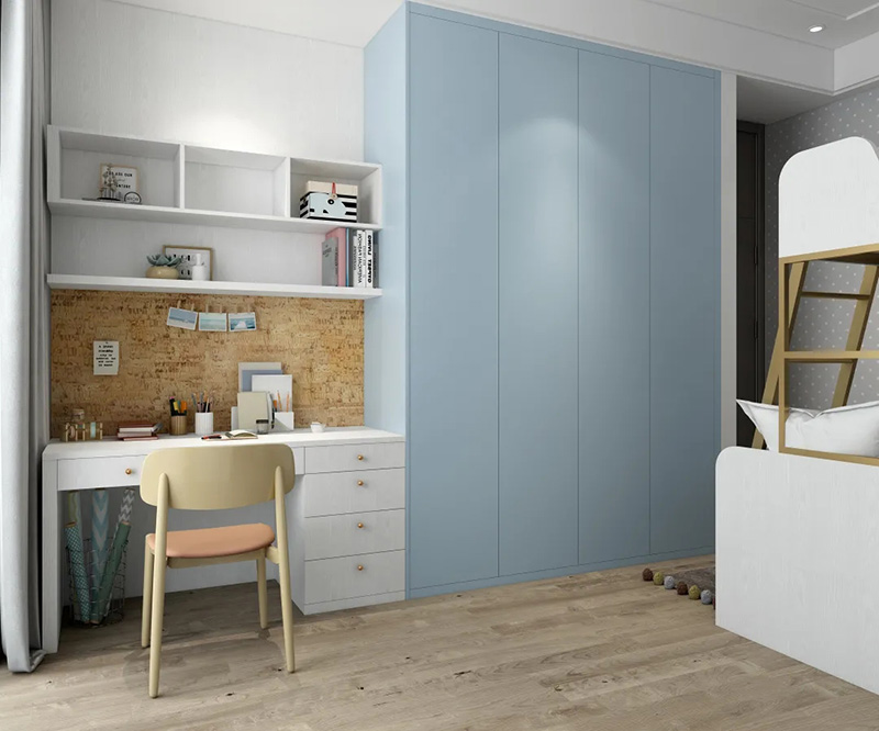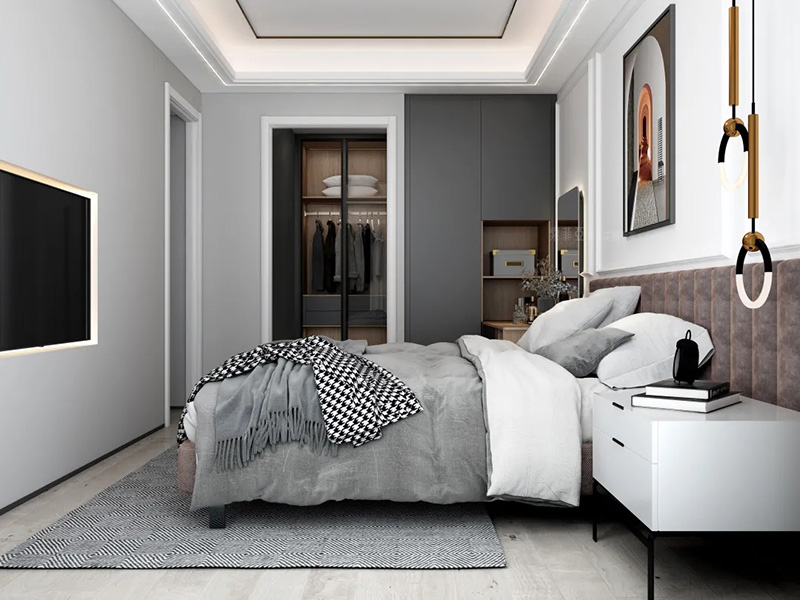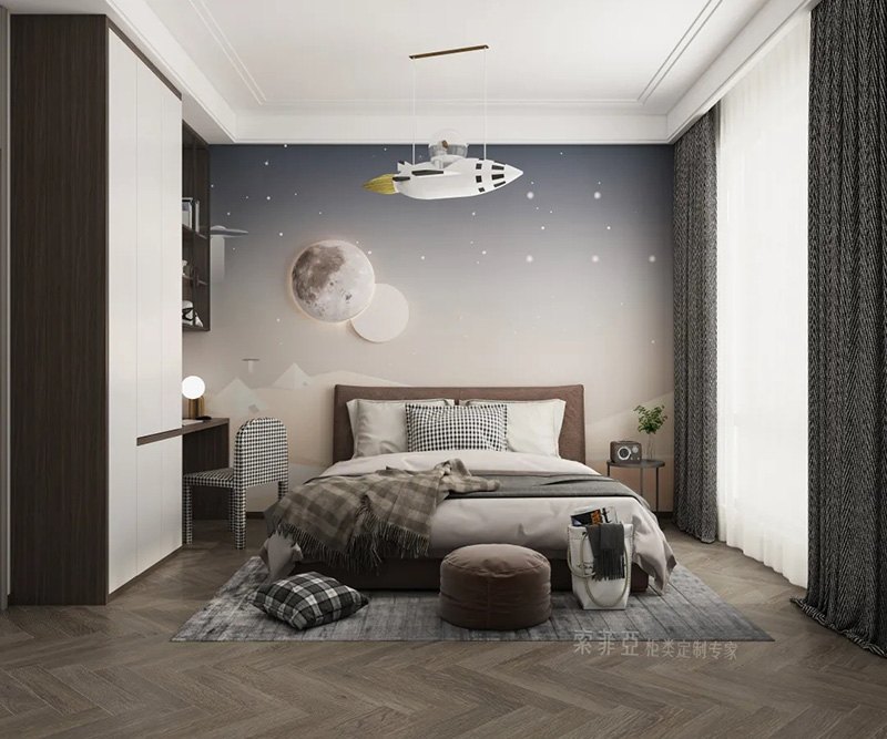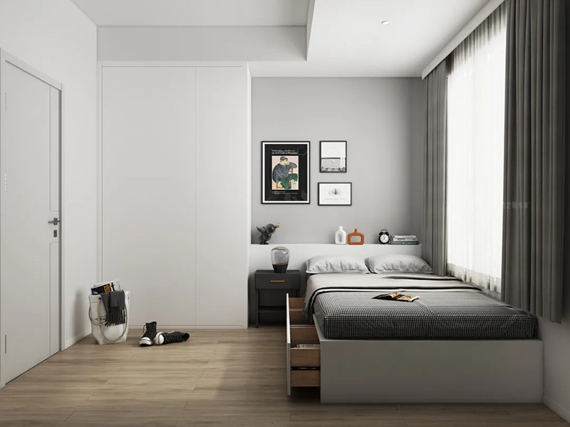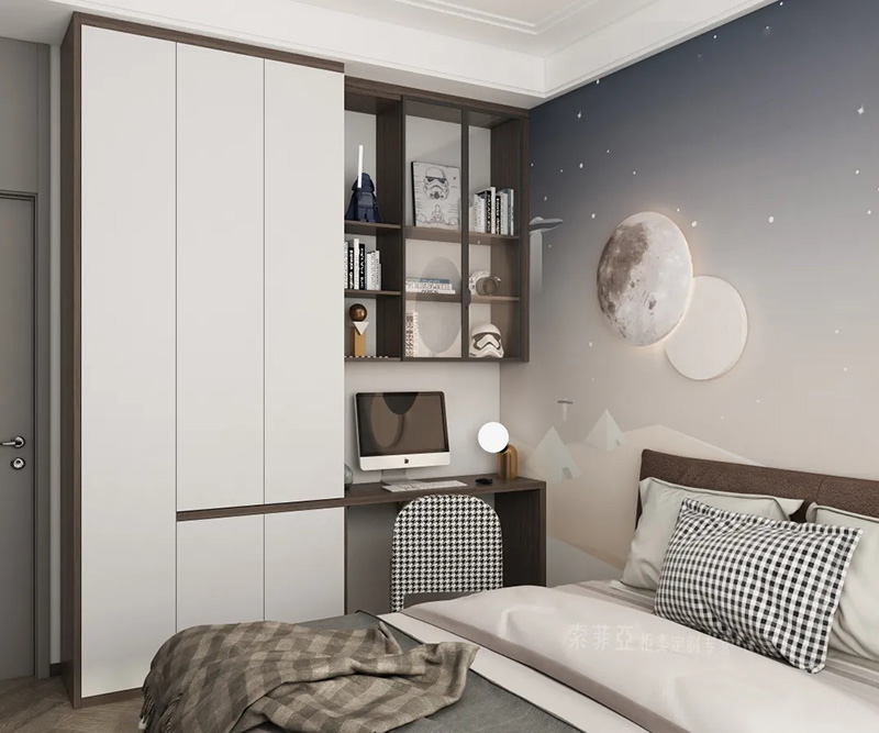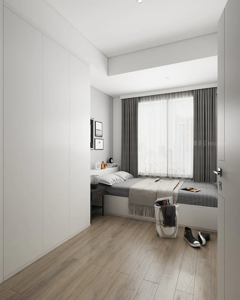 不少人喜歡做頂天立地的大衣櫃或大書櫃,搭配無把手設計,能放大櫃立面的整體性,視覺上有擴大空間的效果。看看,是不是臥室顯大了?
