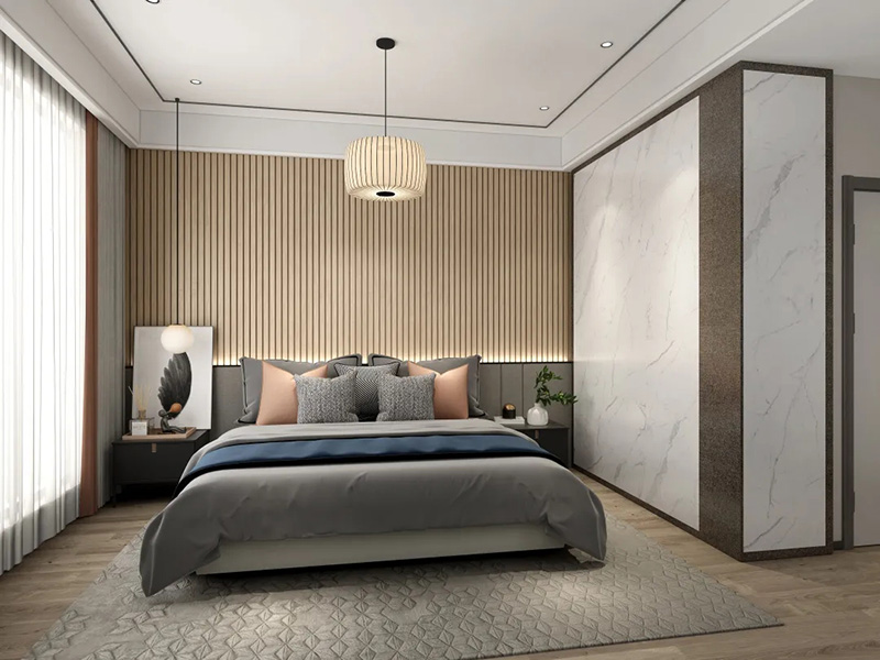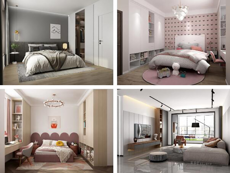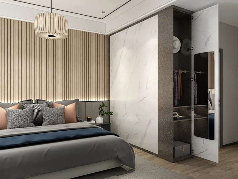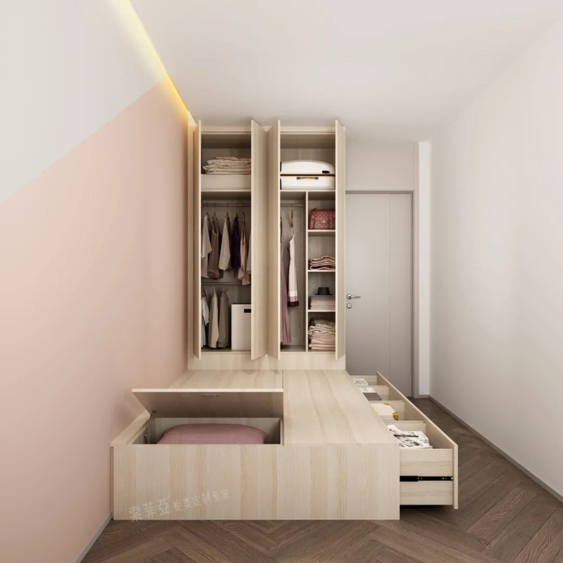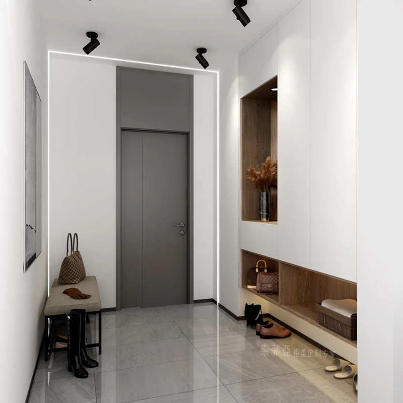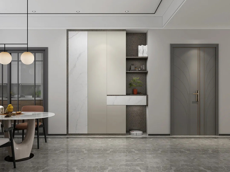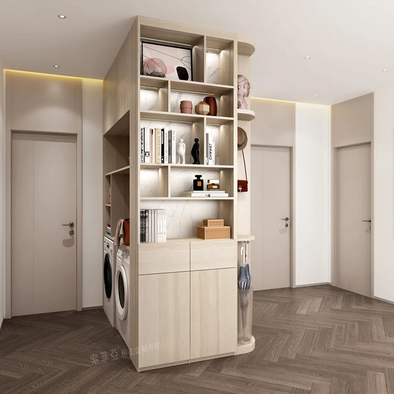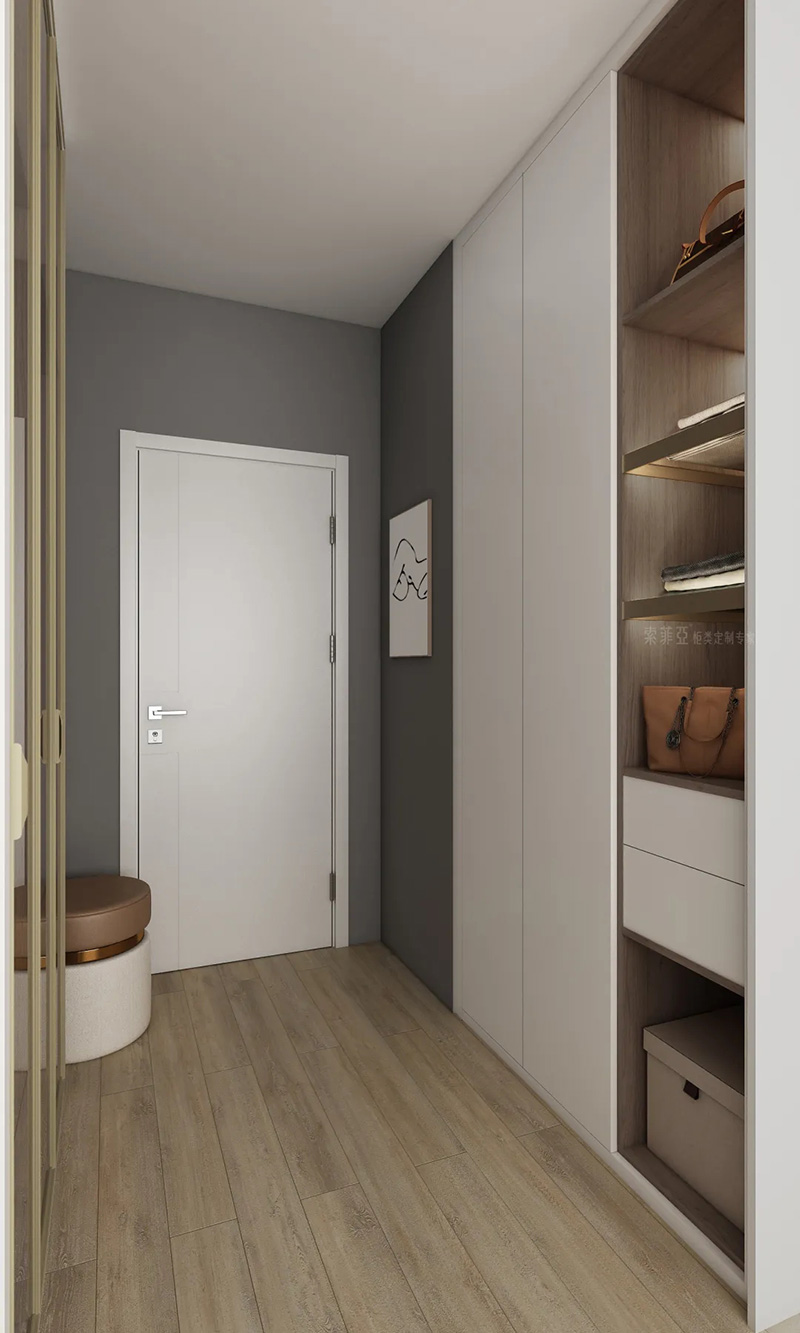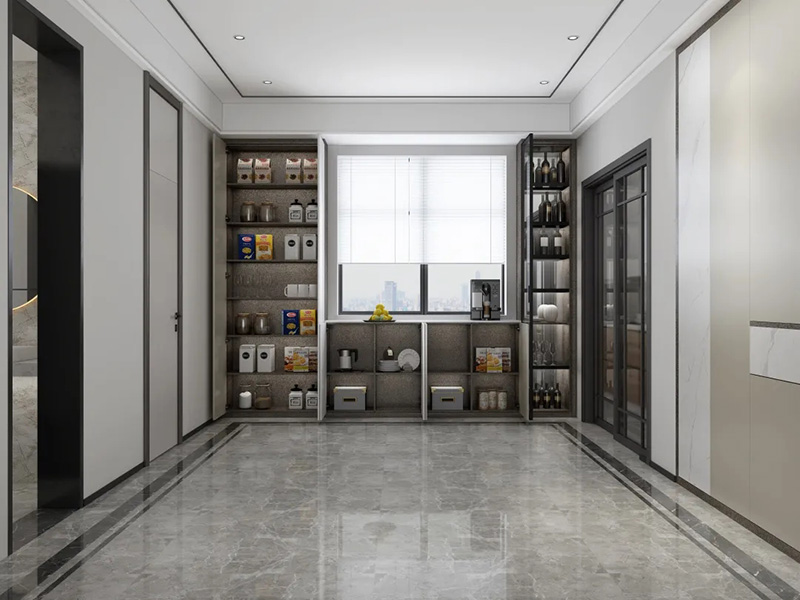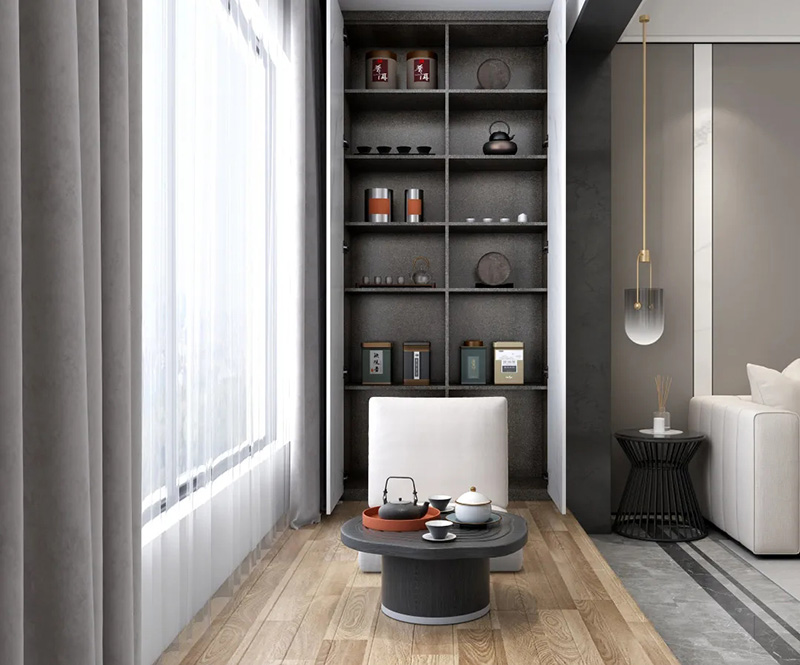 2.櫃門把手一體設計。一般在門板上方或者側邊以凹槽的形式作為把手,開拉櫃門時只需要把手伸到這里即可。