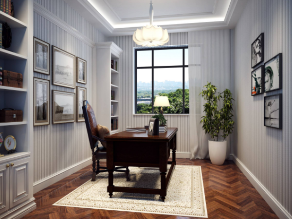 安靜對于書房來講十分必要的,因為人在嘈雜的環境中工作效率要比安靜的環境中低得多。所以在裝潢書房時要選用那些隔音、吸音效果好的裝飾材料。天棚可采用吸音石膏板吊頂,墻壁可采用PVC吸音板或軟包裝飾布等裝飾,地面可采用吸音效果佳的地毯,窗簾要選擇較厚的材料,以阻隔窗外的噪音。