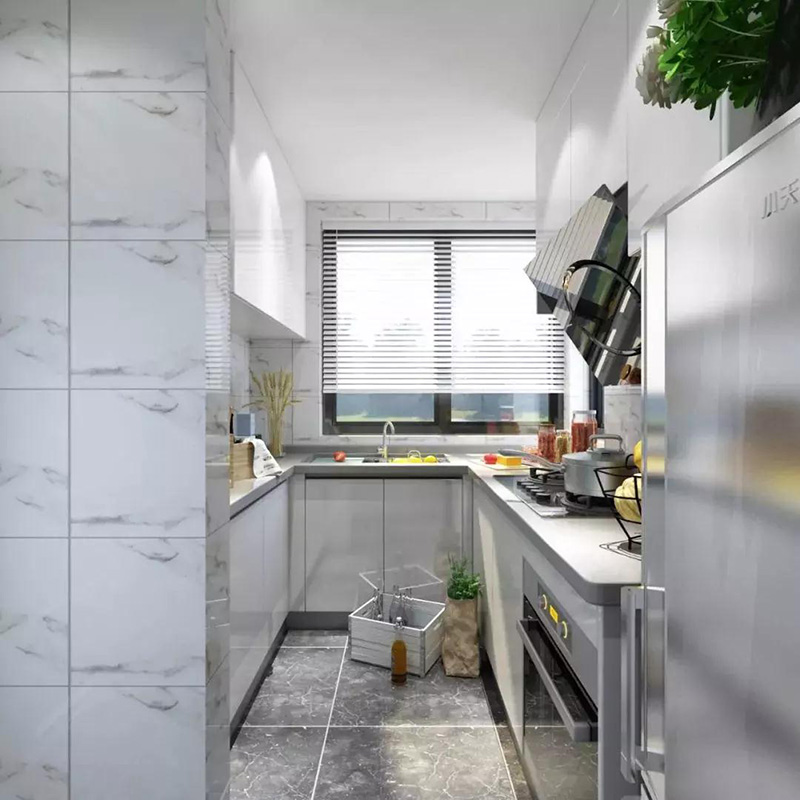 對于小廚房,增大空間視覺效果必不可少,常用的方法就是采用淺色的配色,比如白色、淺灰色、淺木色,這些顏色都能讓廚房看起來更寬敞。