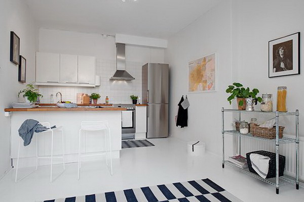單身公寓餐廳家具的布置要以充分利用空間為前提,由于空間的狹小,家具的布置要遵守以現代風格為主,外形簡潔的原則,這樣可以使整個餐廳看起來寬敞明亮,由于餐廳的氛圍比臥室、客廳的氛圍活躍,所以盡量使其看起來活潑一些,這樣也有助于人們調動食欲,未達到節約空間的目的,家具的布置不免有些單調,所以可以添置一個吧臺在旁邊,既有實用性又可以凸顯個性達到裝飾效果。