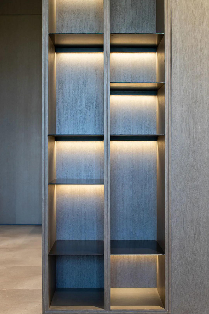 帶觸摸開關鋁框玻璃層板燈的展示櫃,將展示與收納集于一體,同時兼顧實用性和裝飾性。