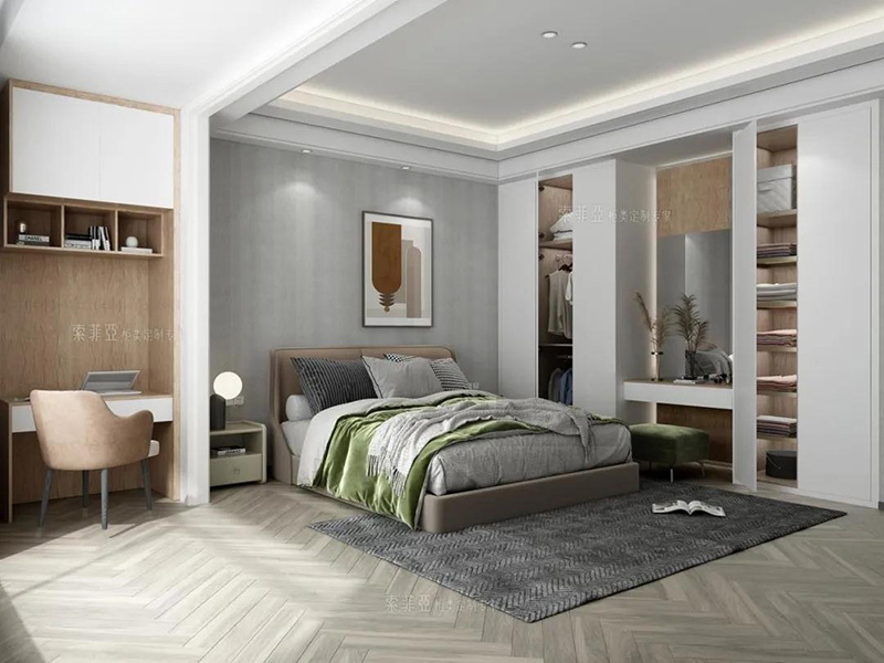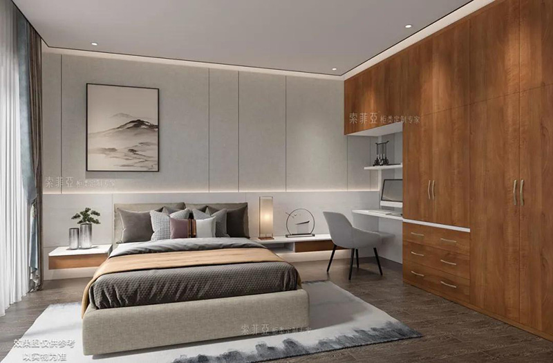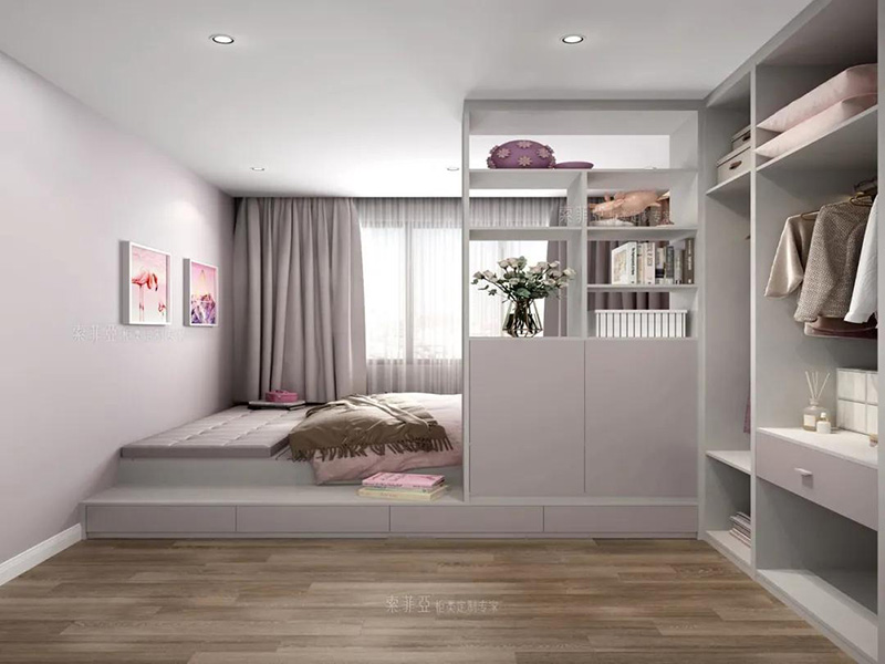 如果希望充分利用臥室空間,組合式衣櫃一定是首選!衣櫃能和梳妝臺、書桌、榻榻米、書櫃組合,在轉角處或兩面櫃體中間“造出”一個功能來,實用感爆棚。