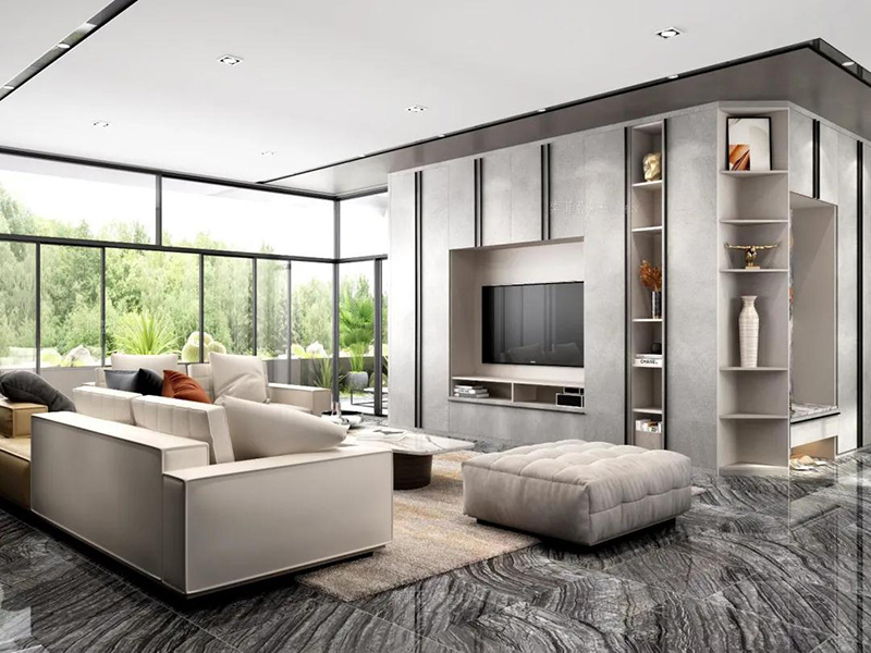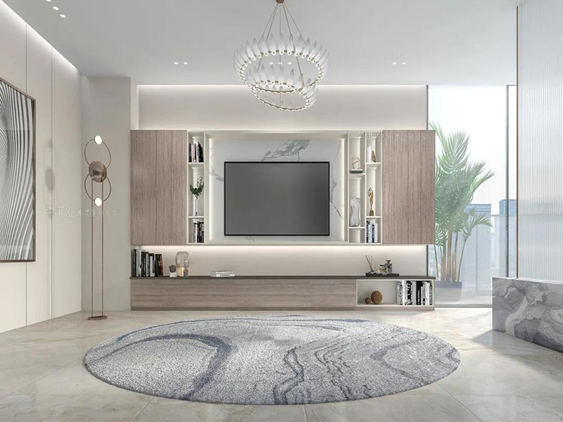 組合式電視櫃一般由吊櫃+矮櫃+側櫃+開放格組成,最直觀的好處是收納力強,而且看起來更大氣。