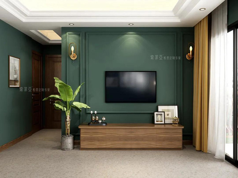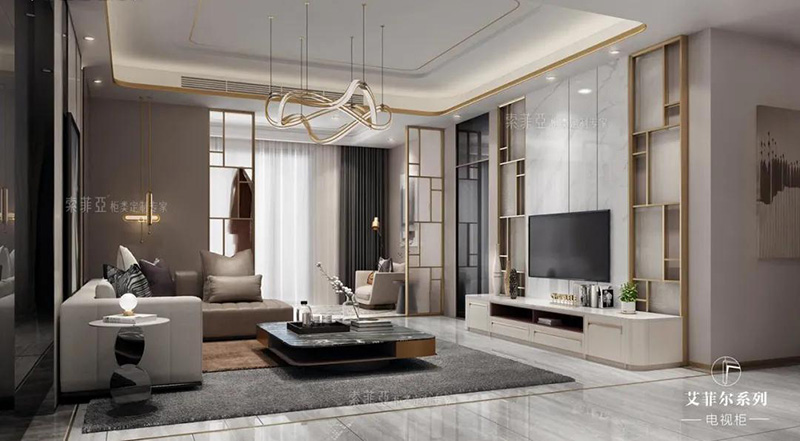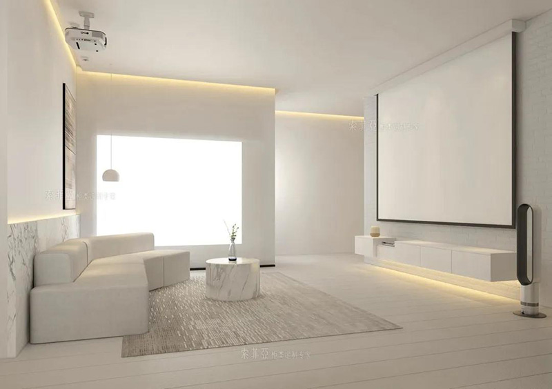 對于追求簡約風、性冷淡風的家居環境來說,一字形電視櫃會更適配。現在不少家庭的客廳已經不保留電視而換用了投影,選用一字形簡約電視櫃也能給客廳騰出更多活動空間。