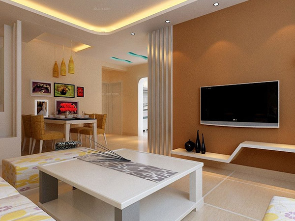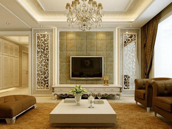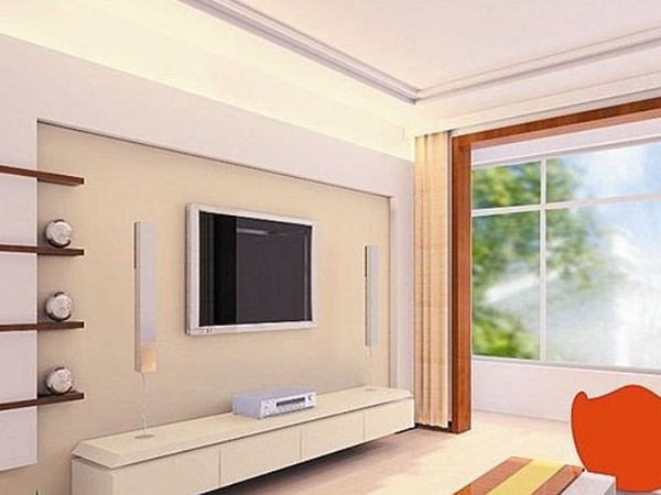 3、電視墻並不是單獨存在的,大家在裝飾電視墻的時候還應留意它與局部吊頂相協調。現在很多都會在吊頂上面安裝燈飾,因此大家要考慮考慮墻面造型與燈光相呼應,照明燈的顏色和強度也應該留意,不要運用瓦數過大或顏色太耀眼的燈泡,這樣在觀影時才不會有雙眼刺痛或眩暈的感覺。
