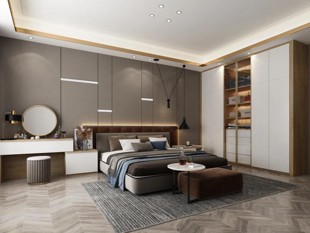超高門衣櫃的設計多樣,還可以融入玻璃櫃門和梳妝臺設計,滿足更個性化的需求。