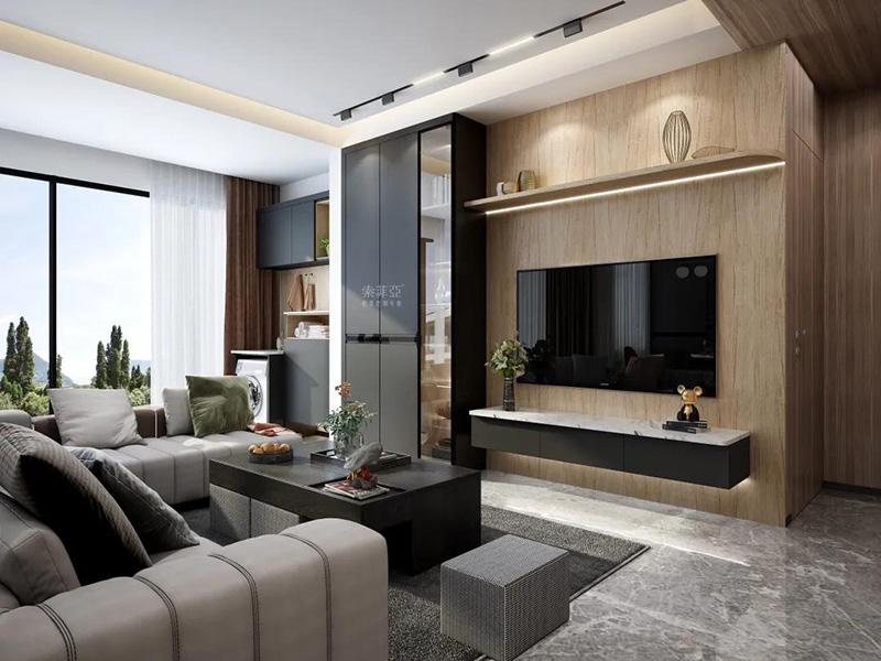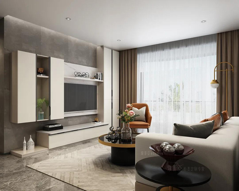 客廳再大一點的,電視櫃在凹造型的同時,還可以繼續開辟更多的收納空間。
