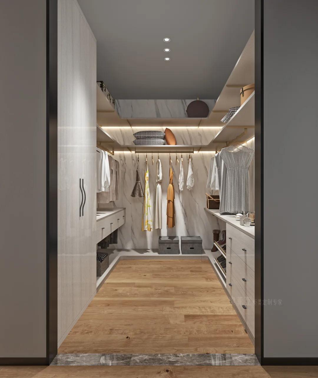 臥室比較大或者有獨立臥室的話,打造步入式衣帽間再好用不過了,可男女分區,盡情收納。