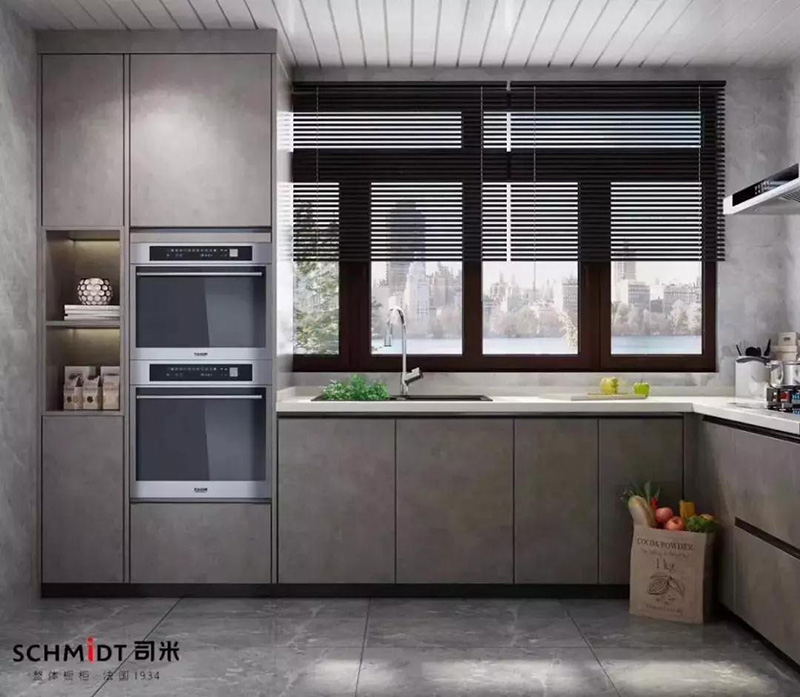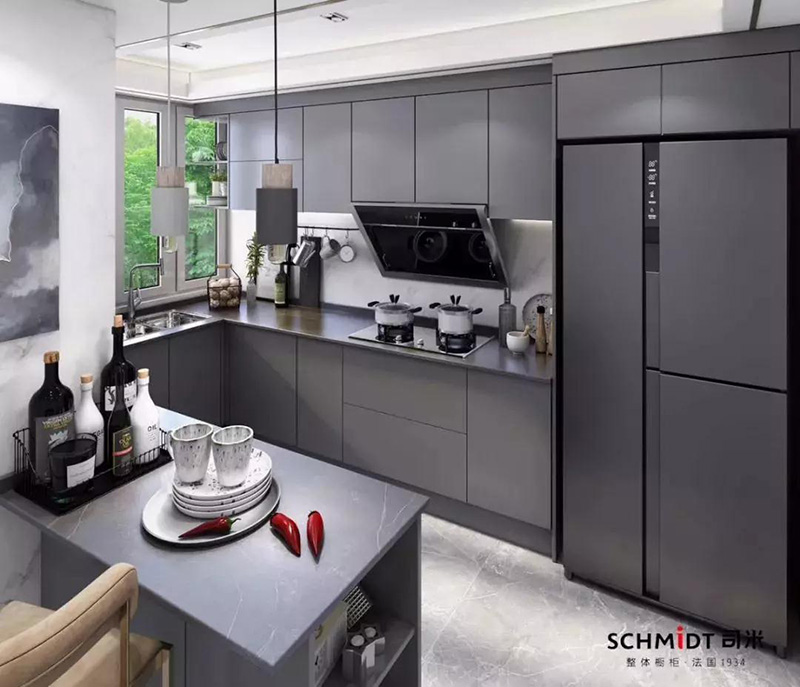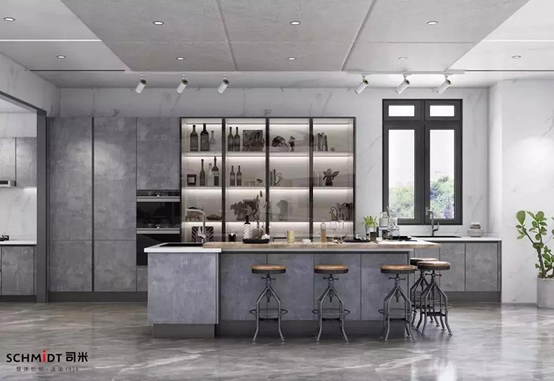 大空間賦予了廚房更多元化的色彩選擇,灰色更顯高級感,灰色屬于沉穩安靜,非常適合充滿油煙的廚房空間,干凈敞亮,高冷又很耐看。
