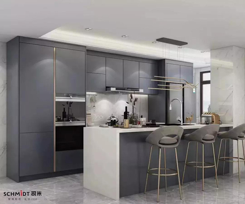 (高級灰色櫥櫃搭配白色臺面,簡約優雅的既視感)