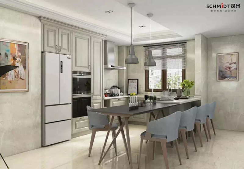 如果想要廚房的顏色更豐富,可以在廚具等裝飾品上下心思,增加廚房的色彩效果。灰色桌椅、灰色燈罩就能輕松打造簡約風!