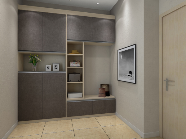 入戶首先看到的玄關,它秉承了整體的簡約風格,開放式的展示櫃和封閉的鞋櫃就構成了玄關。玄關作為家的門面,臟亂可是大忌,收納空間非常重要!如此強大的鞋櫃,放幾十雙鞋都輕輕松松,想想就很開心呢——