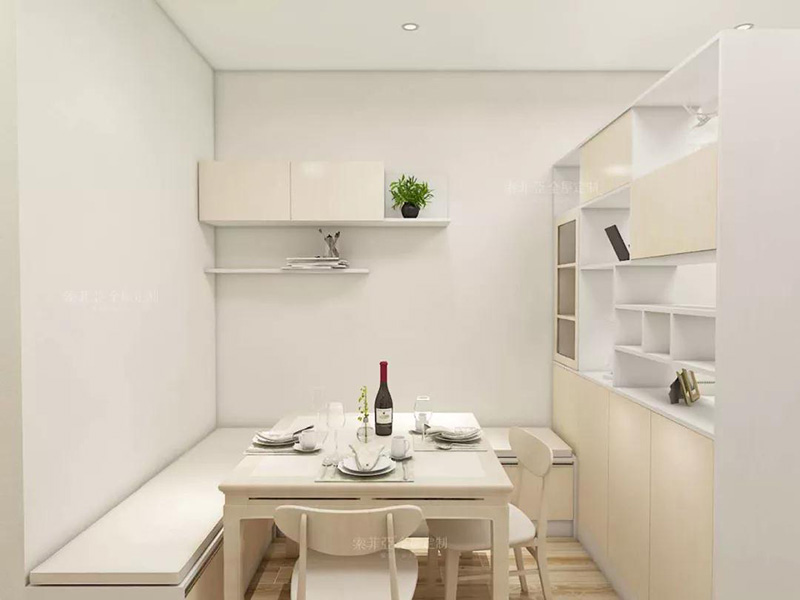 而且卡座式座椅下方還能用作收納,避免了蝸居里雜亂無章的窘況,簡直是一舉兩得。