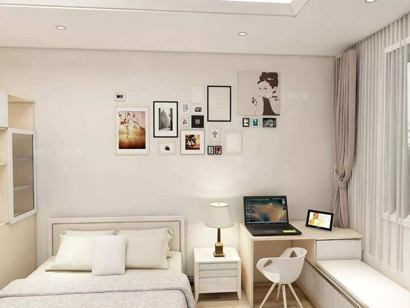 當然了,有這么充足的光線,工作的時候那肯定是要利用起來的。和窗邊櫃一體相連的工作臺,是屬于工作的專屬空間,彌補了大多數單身公寓沒有書房的缺陷。