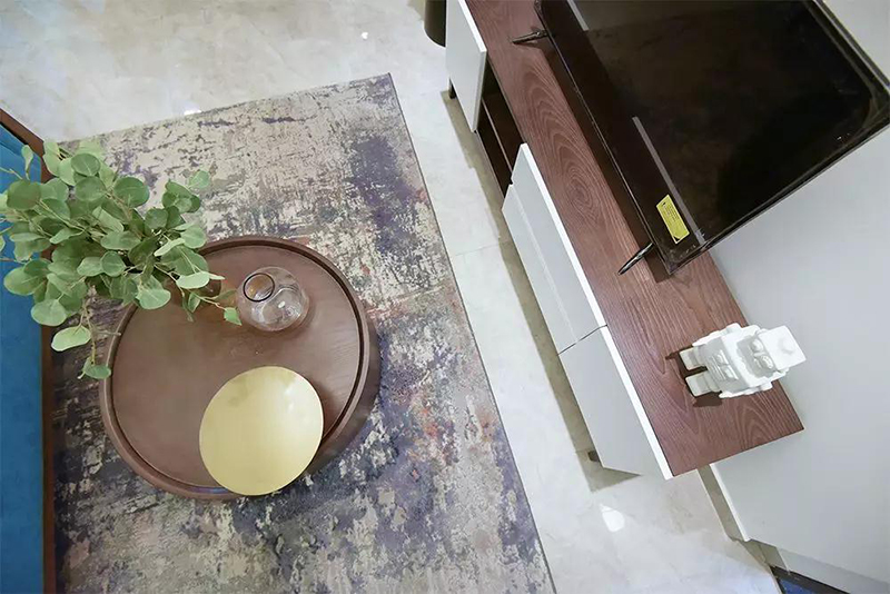 一塊方形的地毯搭配圓形矮茶幾,也給客廳增色了不少。看電視的時候,雙腳放在地毯上,不用因為擔心地板太冷而蜷縮在沙發上啦~