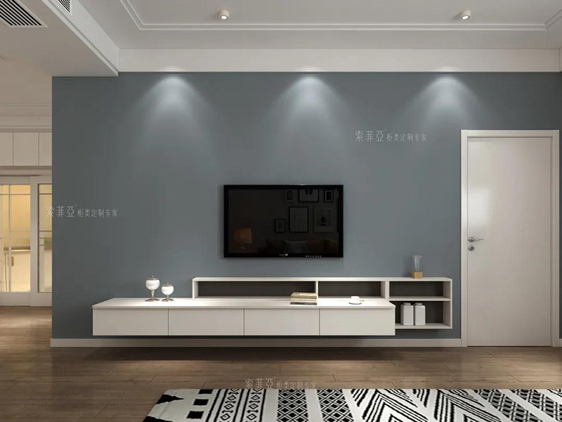 把電視櫃下方懸空的設計不僅方便打掃,掃地機器人也能自由進出哦。