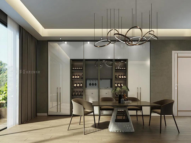 家里藏酒多,餐邊櫃可以結合開放格+酒格,設計成餐酒櫃,好看又有格調。