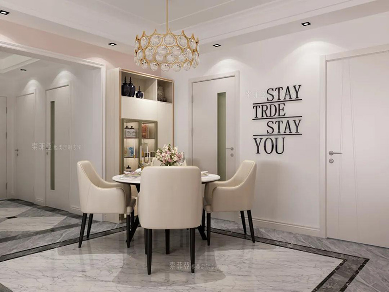 如果想給餐邊櫃與餐桌椅間留出足夠的通道,可以考慮做嵌入式餐邊櫃,平時走動完全不妨礙。