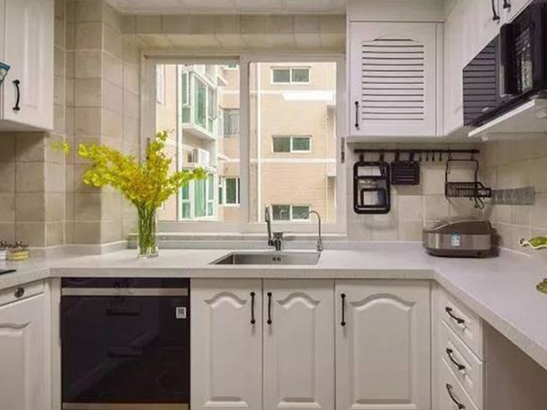 廚房櫥櫃的造型通常有I字型、L字型、凹字型以及中島型,具體要設計成什麼造型,還要根據廚的大小、空間結構來設計。I字型櫥櫃直線型設計簡單明了,通常需要7平方米的面積,長度為2米的空間;L字型櫥櫃則兩邊至少需要1.5米的長度,其特色就是將各項配備依據烹調順序置于L型的兩條軸線上;而凹字型的櫥櫃即是在L型廚房里再加設一個櫥櫃,這樣的櫥櫃最好的好處是增加了收納功能;中島型廚房是在廚房中央增設一張獨立的桌臺,一般用于別墅等高端專修,但是至少需要16平方米的空間!