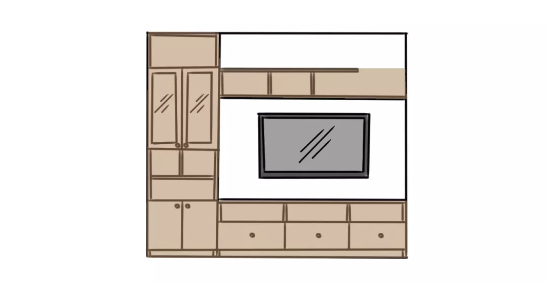 客廳格局方正且規整,靠墻的一排地櫃,將進深空間完美地利用起來。C字型的電視櫃,半包圍式布局讓日常家居用品自然地融入到客廳環境中。