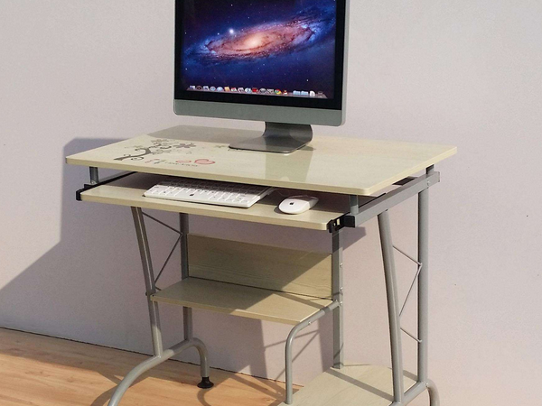 圖中這款臺式電腦桌,長度只有0.8—0.9米左右,同時款式非常簡單,只有一個滑動式抽板和存放機箱的側面機箱櫃,用來存放鍵盤和主機,因此,具有重量輕,易于搬動,節約空間,價格便宜實惠等特點,很適合放在空間緊張的辦公、家庭用戶或者宿舍使用。