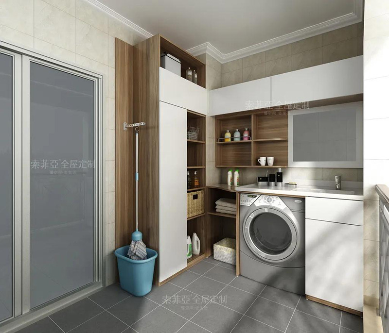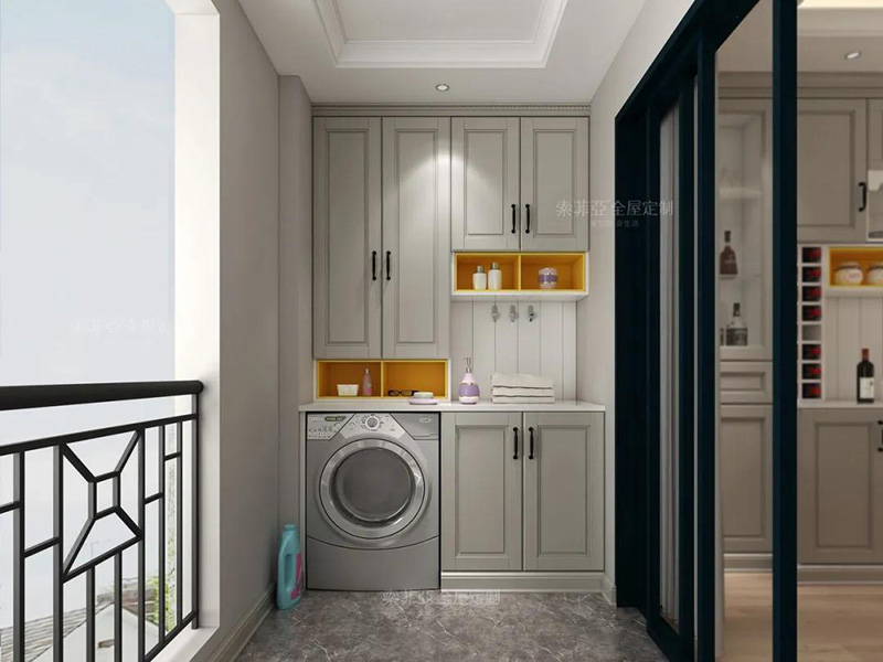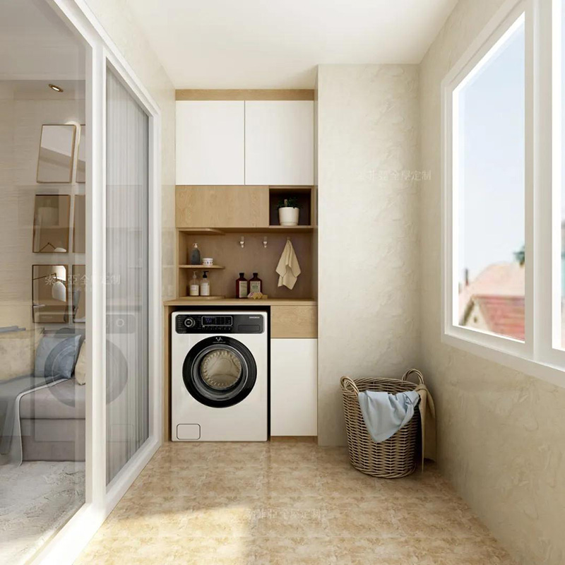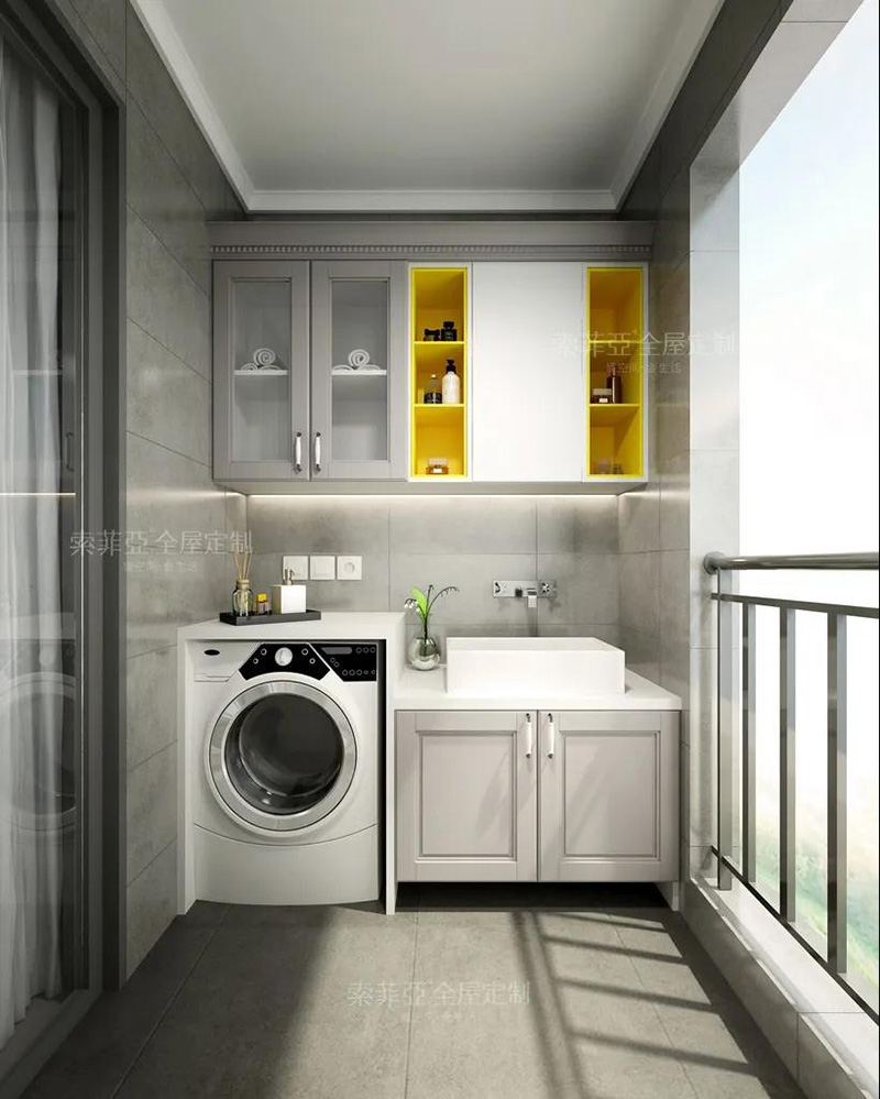 首先它解決了洗衣機擺放這個千古難題,和洗衣機嚴絲合縫的陽臺櫃不僅不會過多占用陽臺的空間,還可以額外滿足你的收納、展示、洗漱功能。