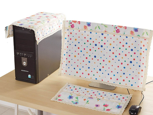 電腦防塵罩選購的時候應注意房屋裝潢風格一致,不管是辦公室還家居中都要注意這個問題。比如簡裝的裝潢環境就不適合用花紋繁復、顏色艷麗的防塵罩;而古典中式與蕾絲搭配在一起也非常怪異。只有與大環境的色彩花式統一協調,才能達到最舒服的視覺效果。家里用的電腦防塵罩以優雅簡潔、寧靜舒適為首選,田園風格就非常好,符合家庭溫馨的氛圍。而且一般都會在電腦桌上擺放有盆栽植物,田園風格防塵罩和植物的搭配,立刻給家中增添了幾分自然氣息。