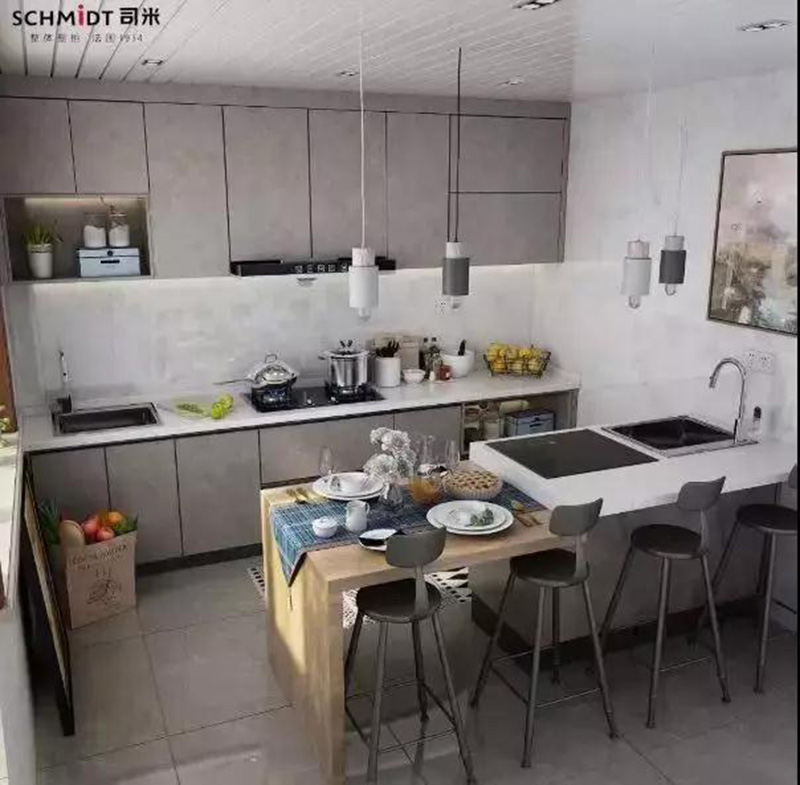 餐廚一體化能夠增進家庭成員之間的交流。餐桌很多時候都能補充作為操作島臺,尤其適合家庭成員較多或是喜愛邀請朋友來家聚會的生活模式。