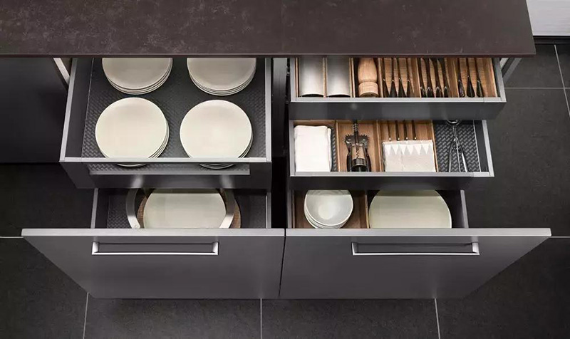 而抽屜中,則可以使用一些分類隔板。把不同類別的物品分隔開,便于尋找、拿取。