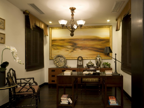 這種小書房裝潢風格具有很強的17世紀歐洲貴族的文化感受和歷史內涵,采用的裝飾設計線條自然、流暢,看起來十分豪華。整個書房給人的感受就是典雅中透著高貴,深沉而又盡顯奢華。