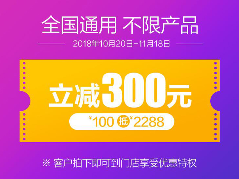 線上拍付1元,到店可抵300元,全國2000+門店通用,省錢就是這么簡單!