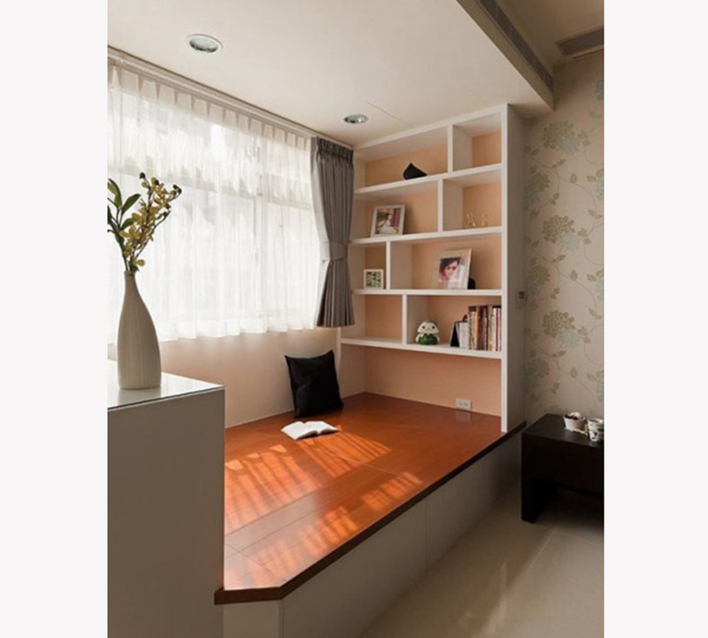 小編的話:把榻榻米的設計也融入到飄窗之中,除了借著從窗戶滲透進來的陽光精心讀書以外,還能悠閑地享受下午茶時光。